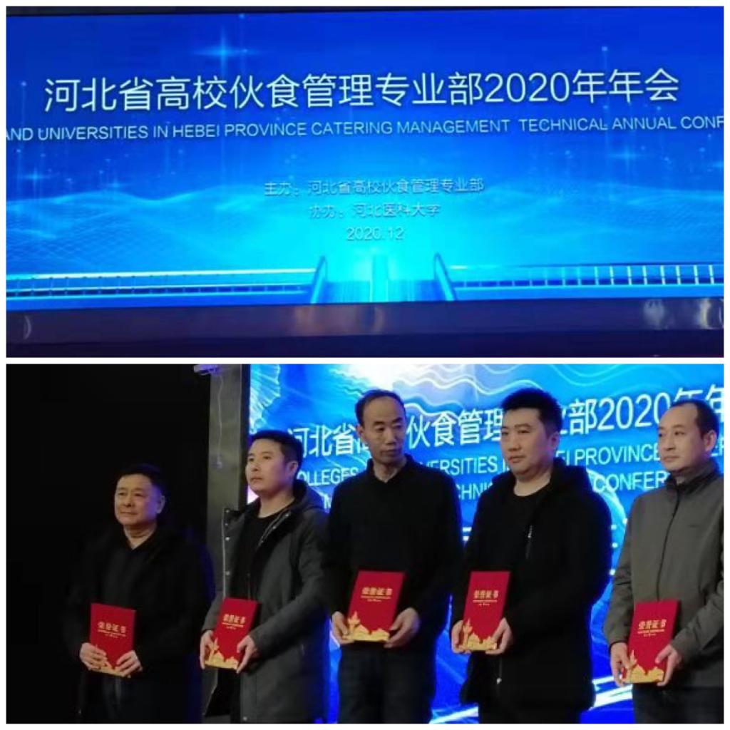 2020年12月20日,河北省教育厅高校国有资产与后勤服务中心、河北省高校后勤管理会在平山举办了河北省高校伙食管理专业部2020年年会,对2020年高校疫情防控餐饮服务先进单位、先进个人进行了表彰。河北省教育厅张悦民主任、河北省高校后勤管理分会陆军恒理事长,高校伙专部刘树勋主任等高校餐饮理事出席了会议。我校后勤集团总经理高峰和饮食服务中心主任马建良参加了表彰会议,马建良被授予“2020年度河北省高校伙专部抗击新冠疫情先进工作者”荣誉称号,同时与我校饮食服务中心张宝忠、范振忠评选为“2020年高校疫情防控餐饮服务先进个人”。