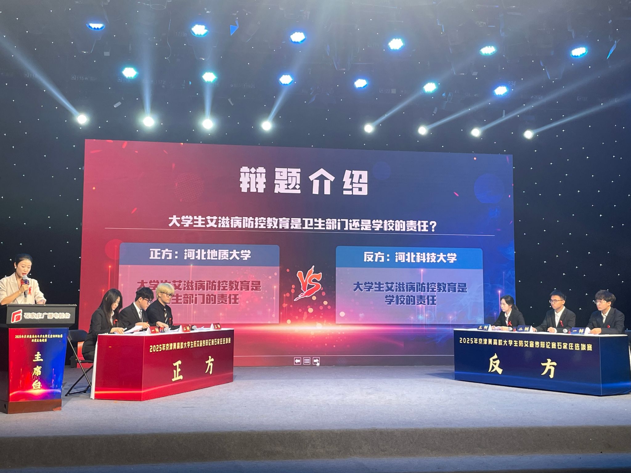 为进一步强化高校艾滋病防控宣传力度,提升大学生防艾知识储备与自我防护能力,2025年10月中下旬,我校医院牵头组织校辩论队,参与2025年京津冀高校大学生防艾宣传辩论赛石家庄选拔赛。